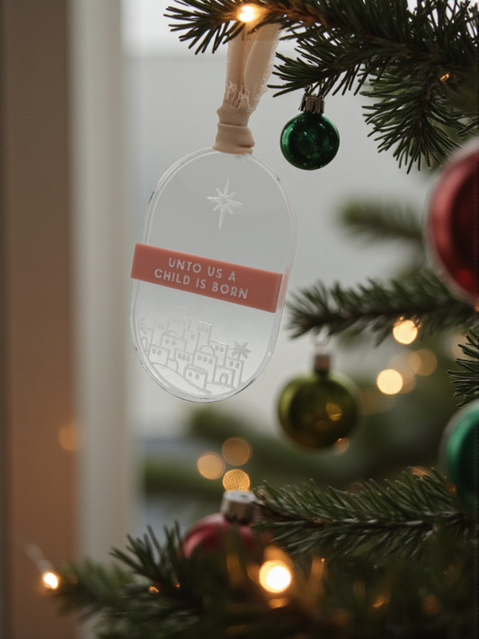 Unto Us a Child Is Born Acrylic Ornament – Christian Nativity Ornament