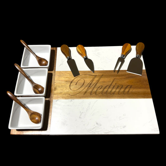 Personalized Marble and Acacia Wood Charcuterie Board – 11-Piece Gift Set