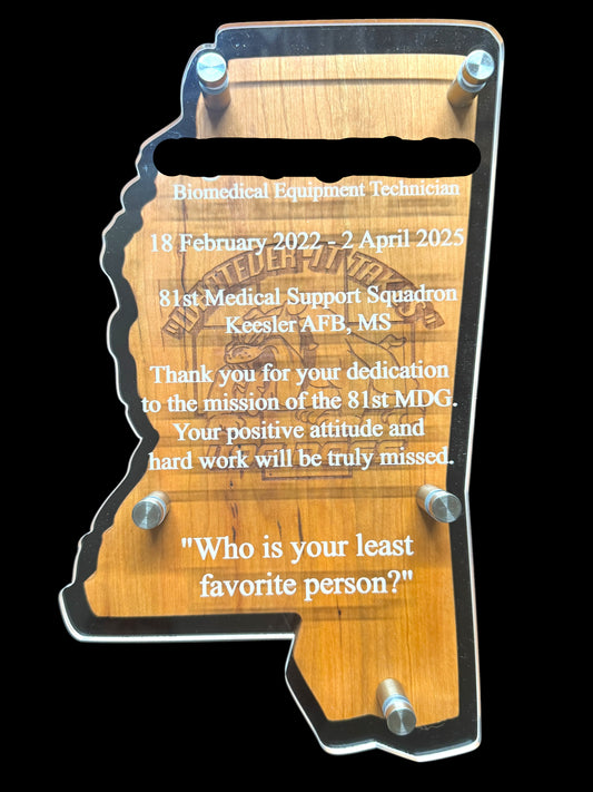 Air Force Enlisted Rank Promotion Gift – Custom Cut and Engraved Cherry Wood