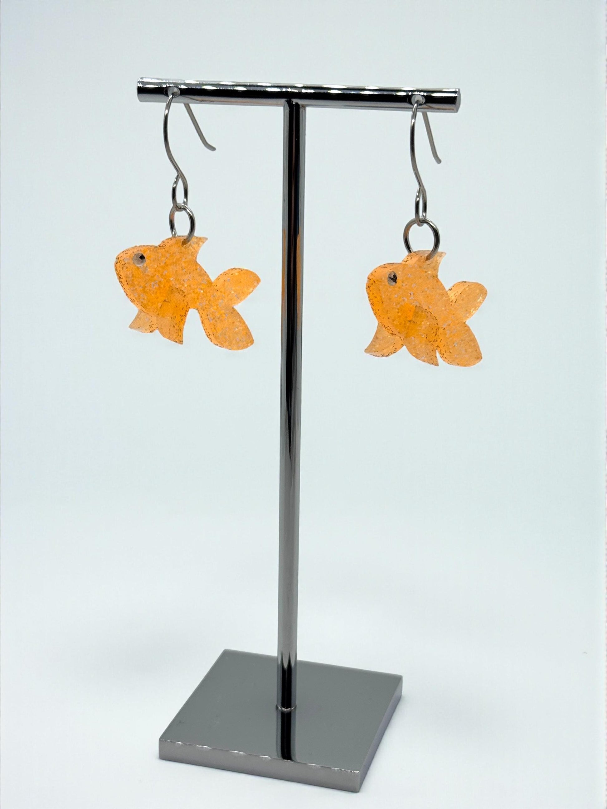 Goldfish Earrings – Orange Glitter Acrylic | 3D Sparkle Design | Lightweight & Hypoallergenic | Handmade Fun Jewelry