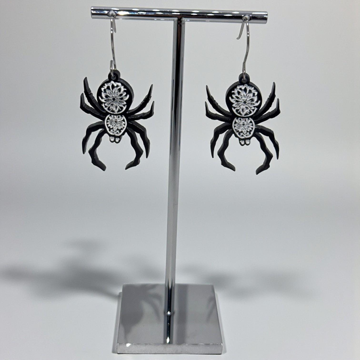 Spider Earrings – Black Acrylic with White Paint Fill | Handcrafted & Hypoallergenic | Lightweight Gothic Jewelry