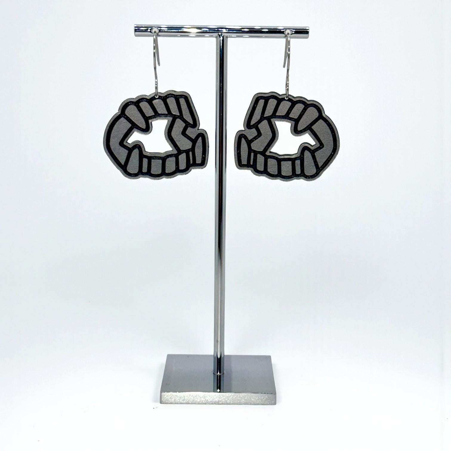 Sink your style into something wickedly fun! 🧛♀️ These Vampire Teeth Earrings are cut from 1/16" dual-layer acrylic, featuring a sleek silver top layer engraved to reveal your choice of bold red or classic black underneath. The design is inspired by those nostalgic plastic vampire teeth from childhood — playful, spooky, and just a little bit mischievous.